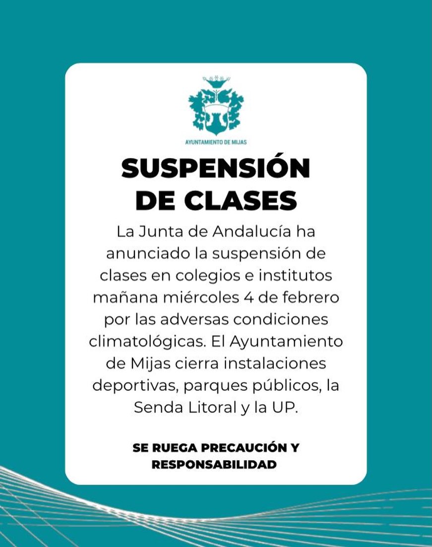 Desde el Ayuntamiento de Mijas han subrayado que el Plan de Emergencia Local ya se encuentra plenamente activado. “Hemos desplegado medidas preventivas en toda Mijas, reforzando los servicios de emergencias, Bomberos y Protección Civil, Servicios Operativos y Parques y Jardines”, asegura Mata, que insiste en que “se haga un uso responsable del teléfono 112 ante cualquier situación de emergencia”.